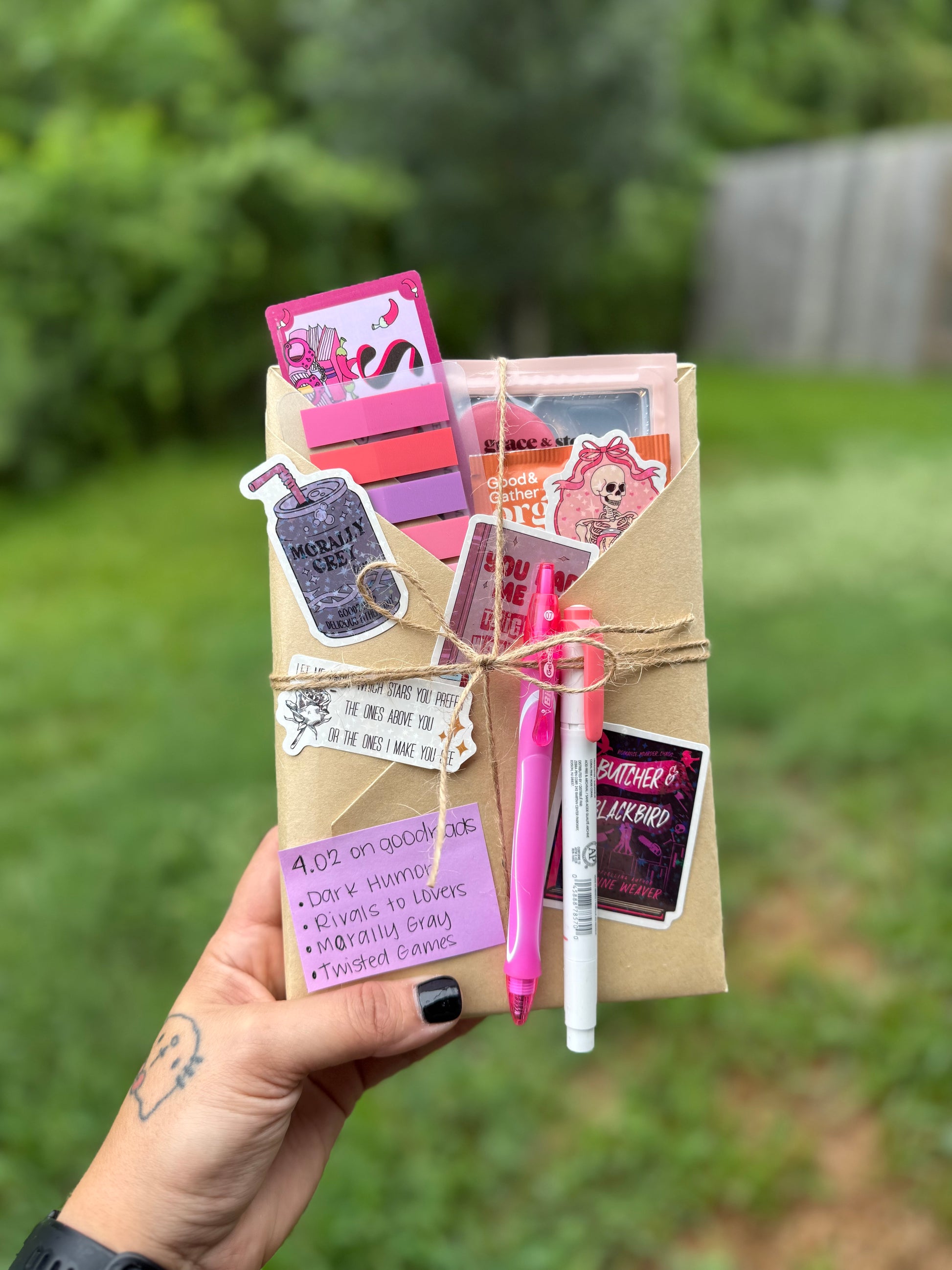 Experience a unique approach to breaking out of your reading rut with Blind Date With A Book. Each package includes a book, stickers, a beverage, a reading log, bookmarks, writing utensils, annotating tabs, and an eye mask for your reading comfort. Enjoy your new book with a fun twist!